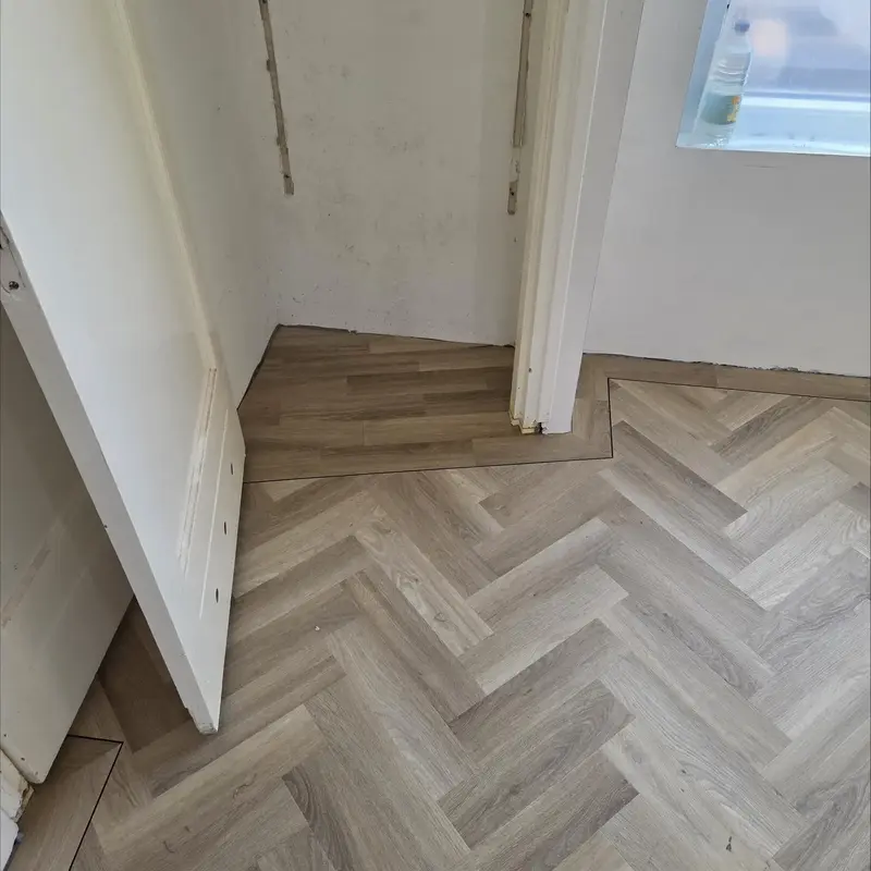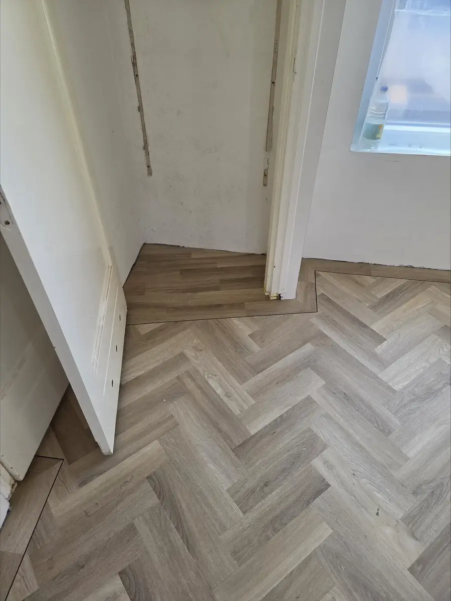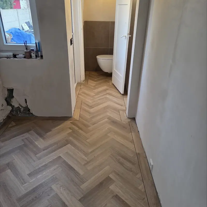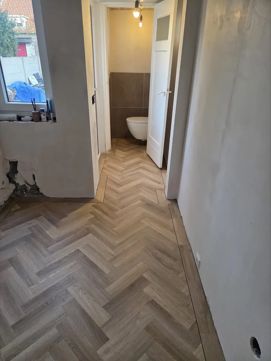 Naadloos gelegd met doorlopend patroon; plinten en afwerking perfect in lijn. In samenwerking met Ronny’s vloerenbedrijf.